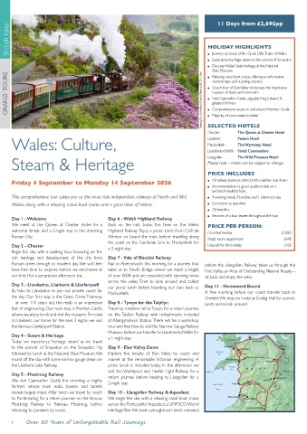 GRAND TOURS Ffestiniog Railway heads to Blaenau Ffestiniog © Chris Parry ● Coach tour of Elan Valley showcases the impressive