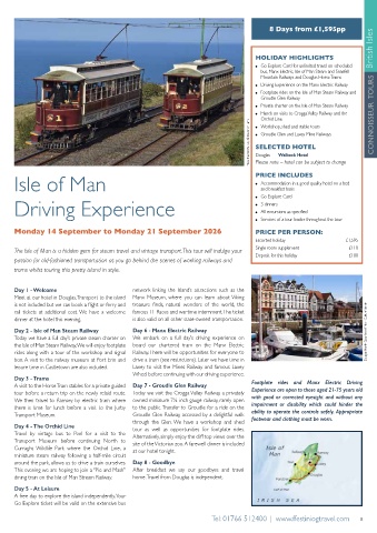 box. A visit to the railway museum at Port Erin and drive a tram (see restrictions). Later we have time in