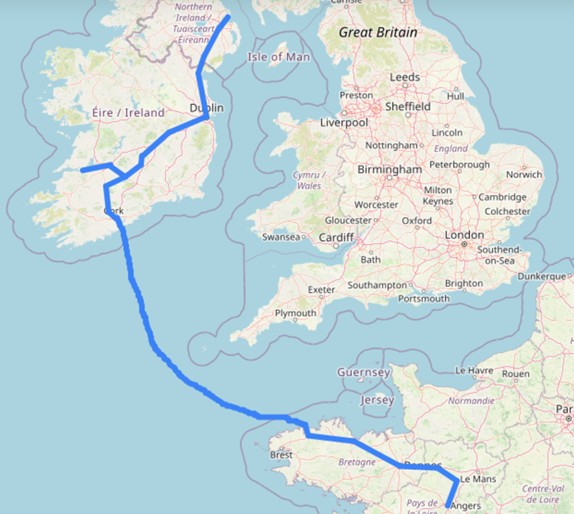 All travel from Belfast on day one, through to Angers on day 9
